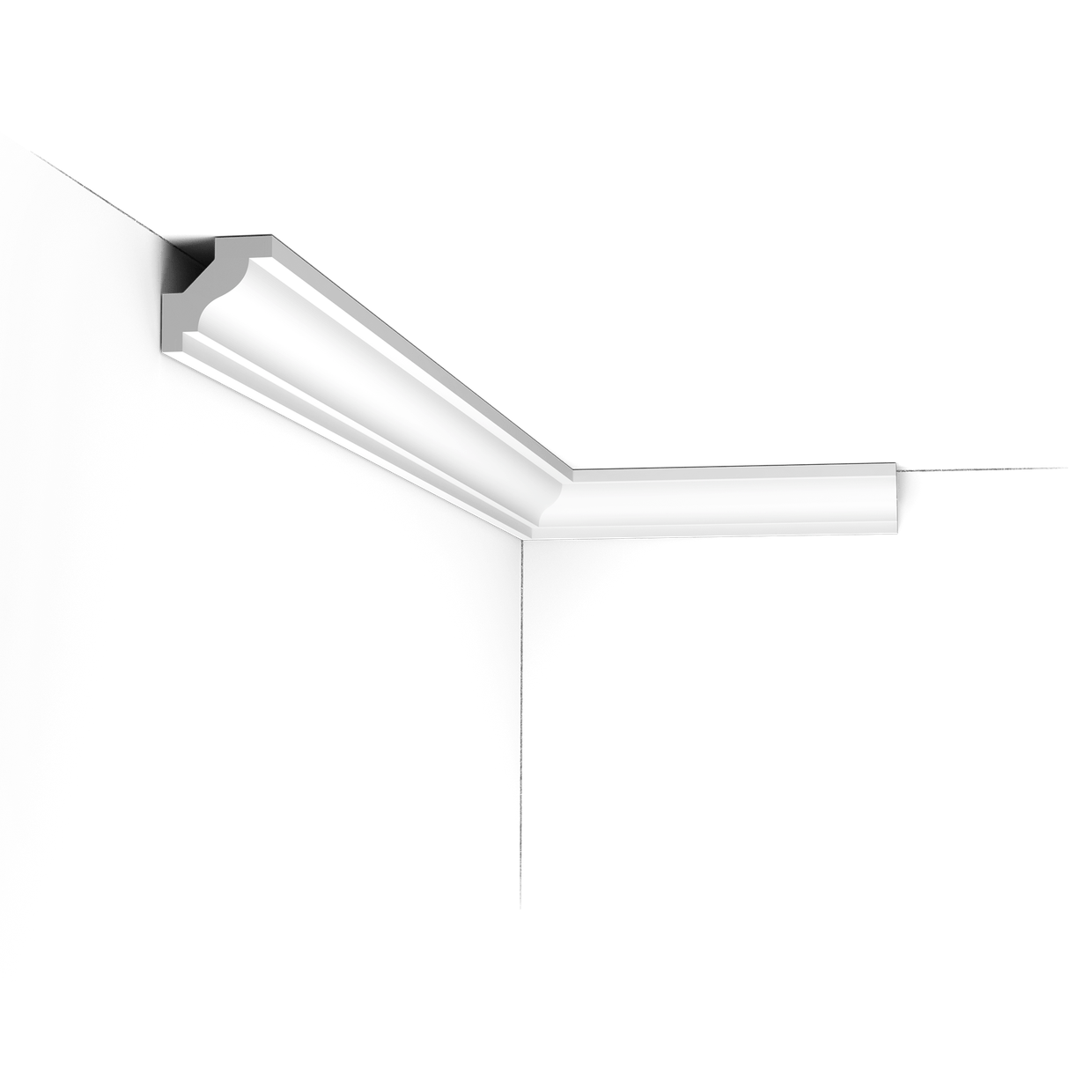Versión flexible del modelo C230. Cornisa pequeña con un patrón clásico de líneas rectas. Gracias a la tecnología Flex, los muros redondeados o las superficies curvas no suponen ningún problema. Comentario: Utilice el adhesive DecoFix Pro o DecoFix Power. Es necesario atornillar la pieza en la pared. Flex Radius: R min = 150 cm