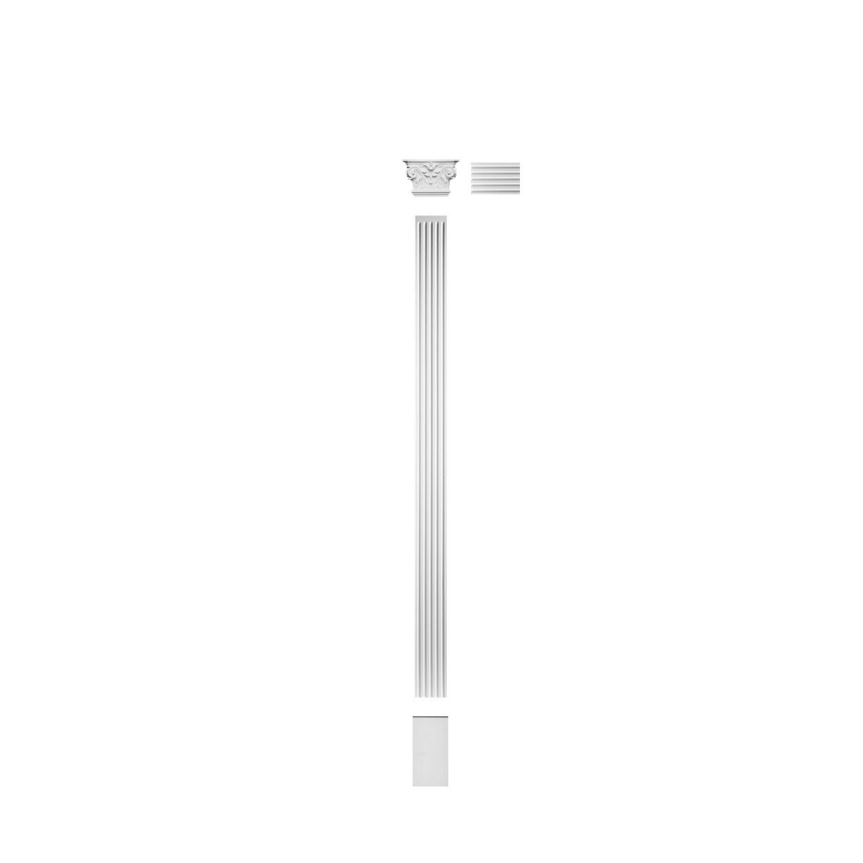 Pilastra pequeña decorada con canaladuras verticales. Comentario: Utilice el adhesivo DecoFix Extra para pegar con media base y medio capitel.